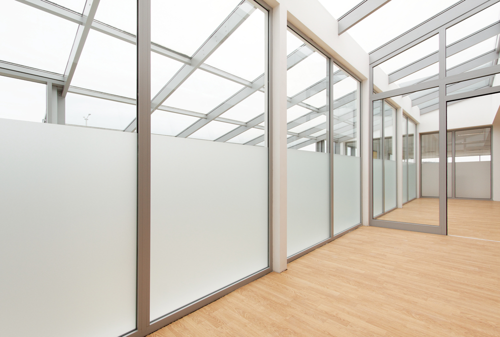 Separaciones, biombos, tabiques de vidrio de seguridad totalmente realizados con aislamiento acústico y visual, pudiendo transformar un despacho de vidrio de transparente a translucido mediante accionamiento de un interruptor eléctrico o mando a distancia.