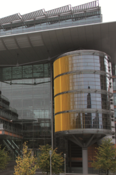 Las fachadas cuentan con soluciones diferentes basadas en vidrios de doble acristalamiento. Los ascensores panorámicos y las escaleras son realizados con estos vidrios curvados de especiales características.
