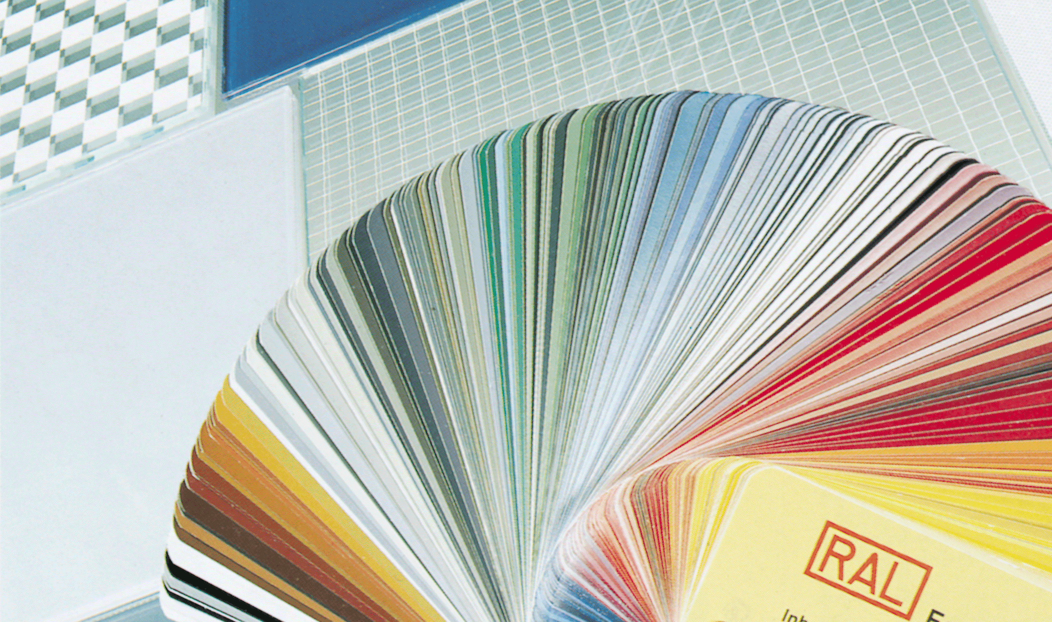 Son aplicables la mayoría de los colores de las Cartas de color Ral y Pantone, así como combinaciones de varios formando “mármoles” y “granitos” en vidrio.